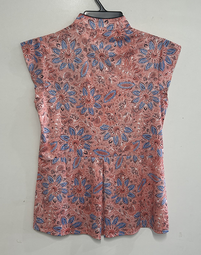 Stencil Flower print, Flutter Sleeve, Back Pleat, High-low hem.