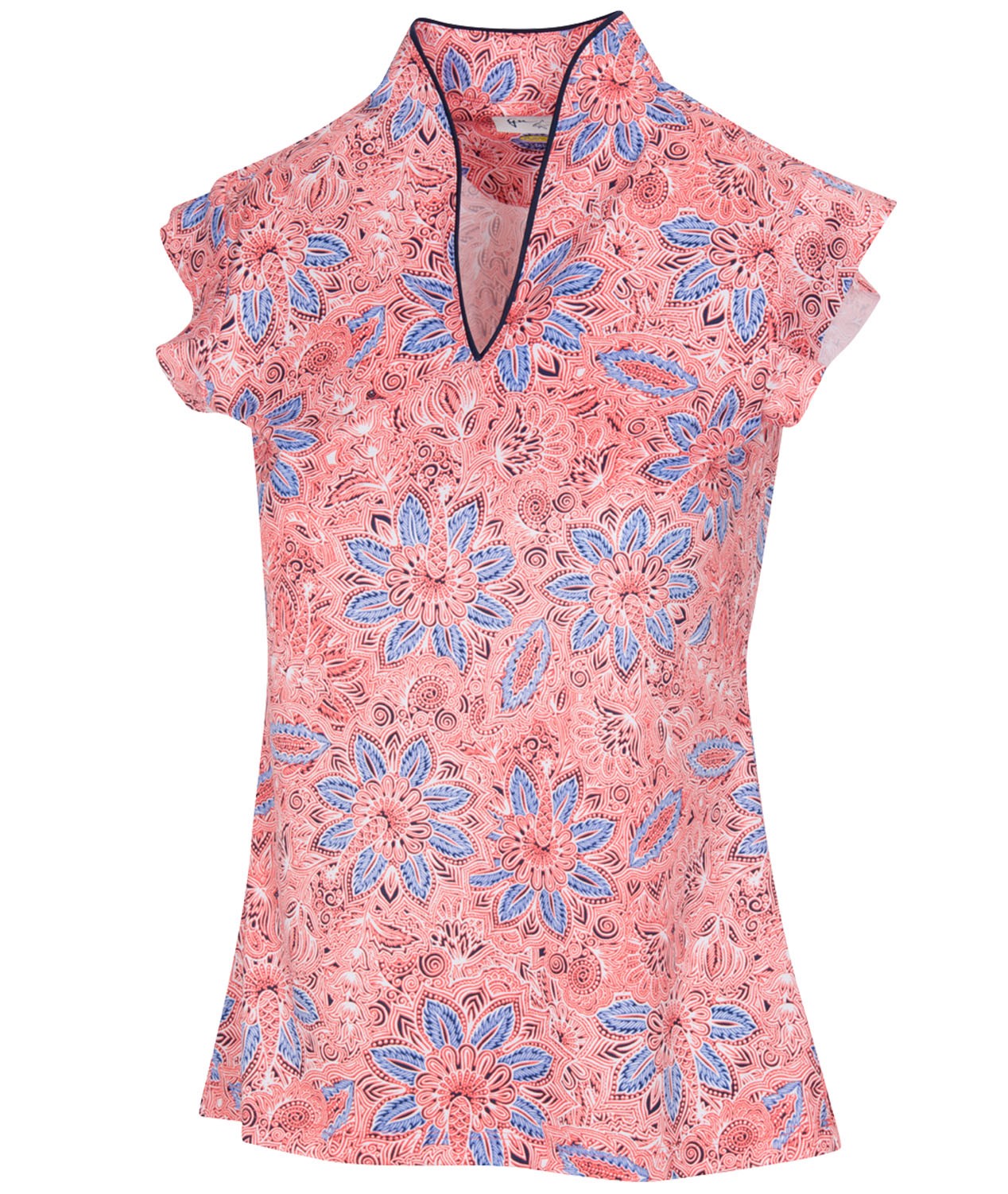 Sculpted neckline with contrast piping.