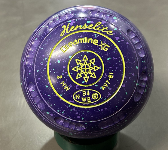 Henselite Dreamline XG, Size 2, Gripped, Dark purple with light purple and mint speckles, stamped 2034 with pattern logo.
